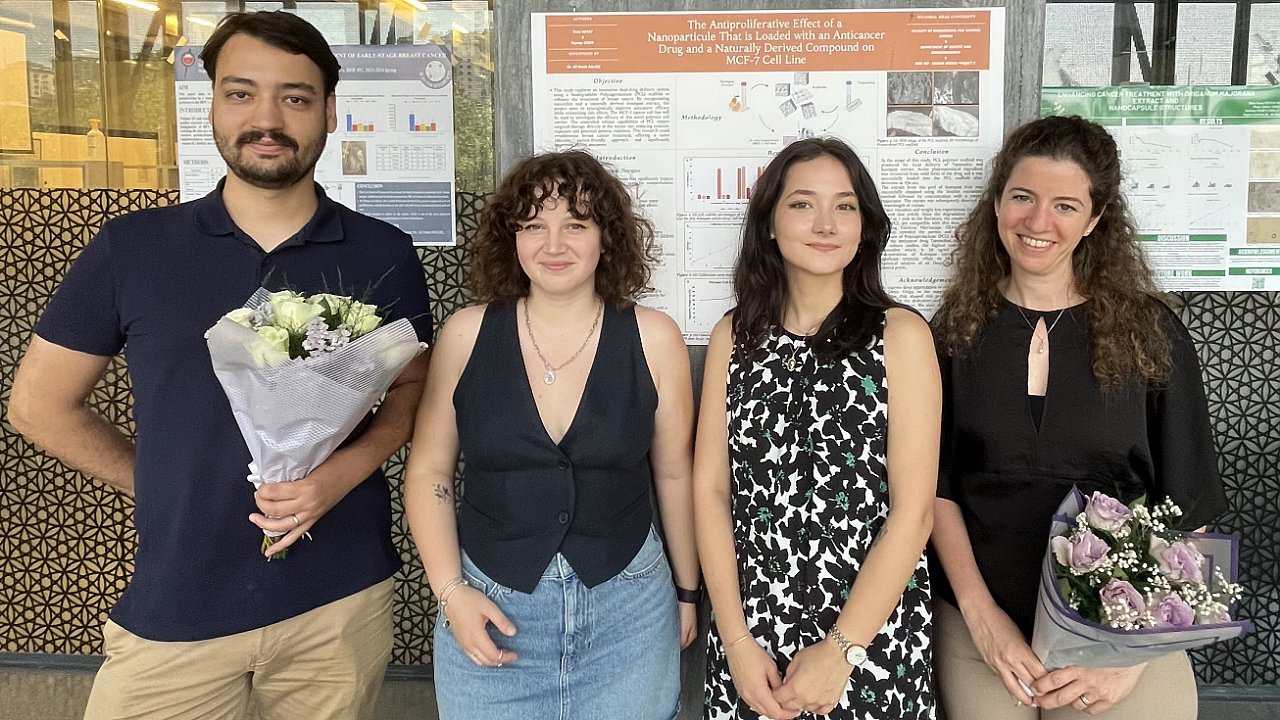Genetik ve Biyomühendislik Bölümü Dr. Öğr. Üyesi Ali Deniz Dalgıç ve Dr. Öğr. Üyesi Sesil Çınar’ın danışmanlığında yürütülen proje kapsamında kamkat meyvesinin özü bir kanser ilacı ile birleştirildi. Bu bileşenler üç boyutlu ve gözenekli bir yapının içine yerleştirilerek tümör ameliyatı sonrası hızlı ve etkili lokal ilaç salımı sağlayan bir sistem geliştirildi.